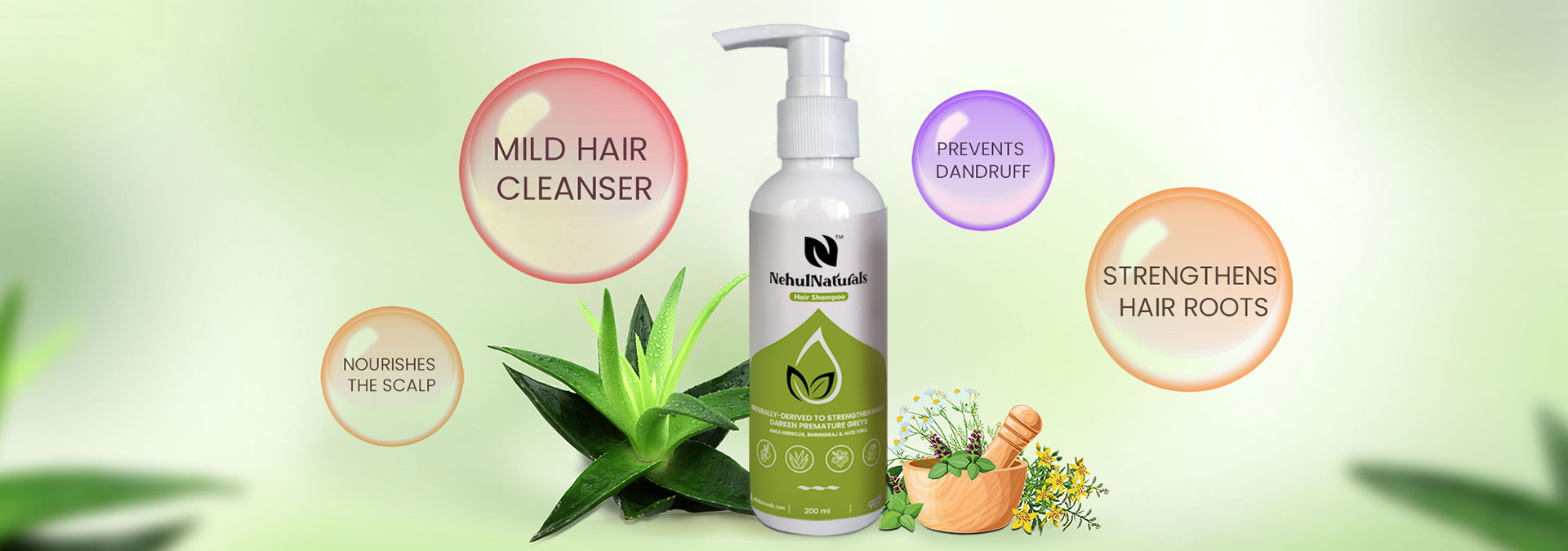 Nehul Naturals Amla, Bhringraj, Hibiscus & Aloe Vera Shampoo is a perfect herbal cleanser that gently removes dirt, pollutants and excess oils from your hair and scalp. It prevents breakage by improving hair elasticity and treats patchy baldness, dandruff, premature greying and hair loss.